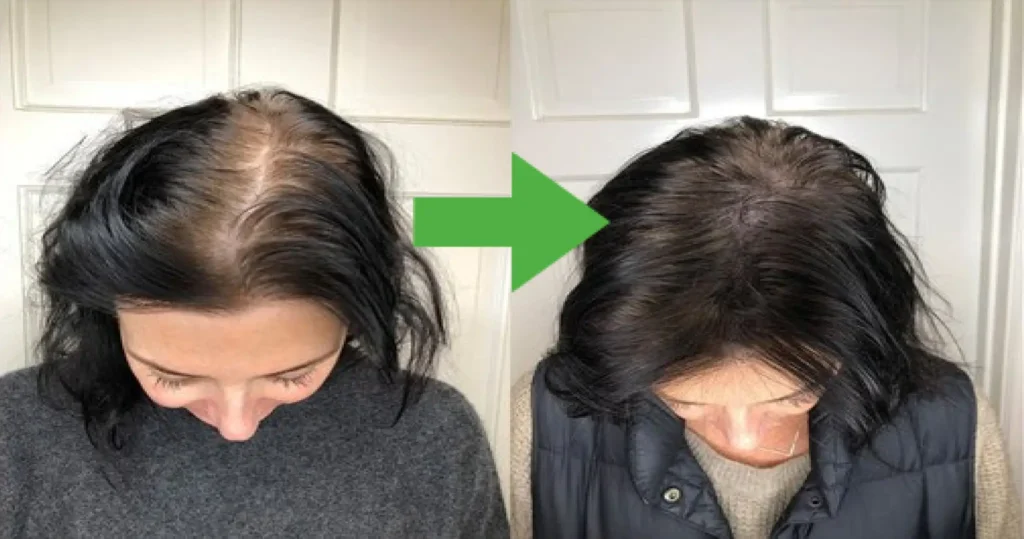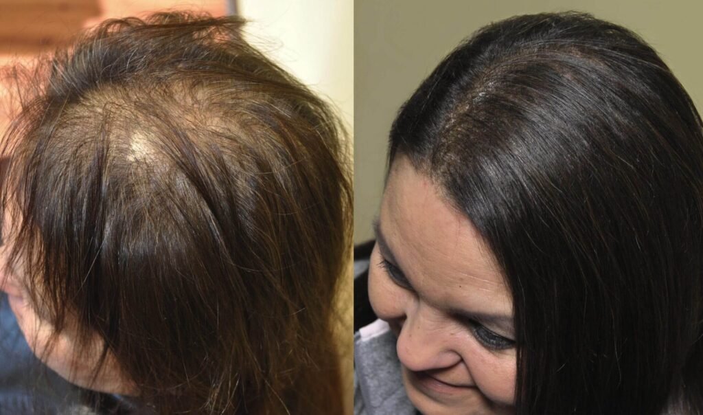 O afinamento começou a diminuir e cabelos novos e saudáveis começaram a aparecer.
