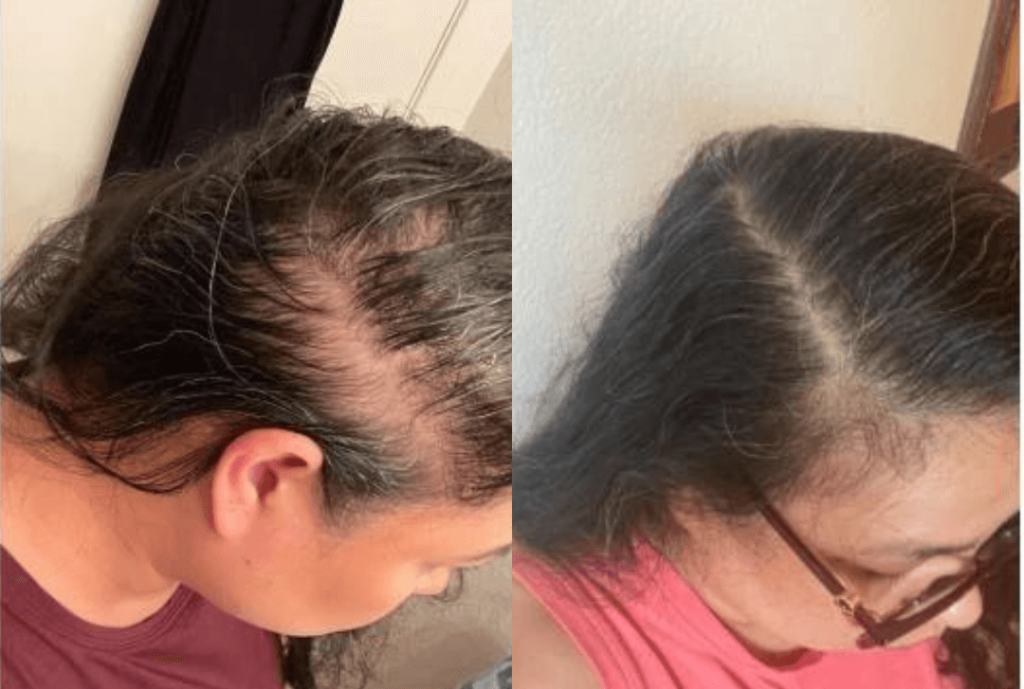 Depois de apenas uma semana, comecei a ver mudanças. Meu cabelo parecia mais forte e havia visivelmente menos queda de cabelo. Avancei para 3 semanas e pude ver um novo crescimento onde não via há anos. Meu cabelo estava ficando mais denso e as carecas foram preenchendo…