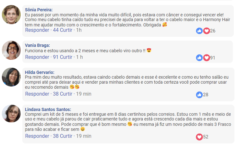 Se você visitar o site do Harmony Hair, descobrirá milhares de depoimentos de pessoas que revitalizaram seus cabelos com sucesso. Estas são histórias reais de pessoas como você, que experimentaram um crescimento e renovação significativa do cabelo: